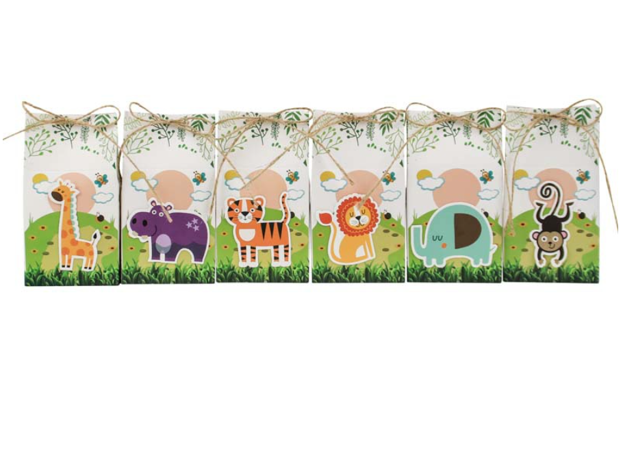Scatole Regalo all'Ingrosso con Animali Cartoon, Decorazioni per Feste di Compleanno per Bambini con Motivi di Tigri, Leoni e Scimmie