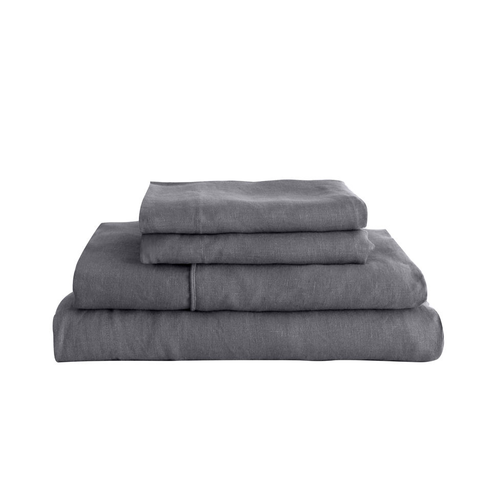 Set di Lenzuola e Copripiumino in Lino Francese 100% Morbido e Resistente, Colore Carbone, Personalizzabile con Logo e Dimensioni, Vendita all'Ingrosso