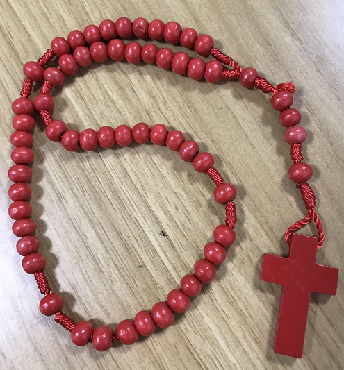 catholic wood round beads religious rosary with wood cross by cord