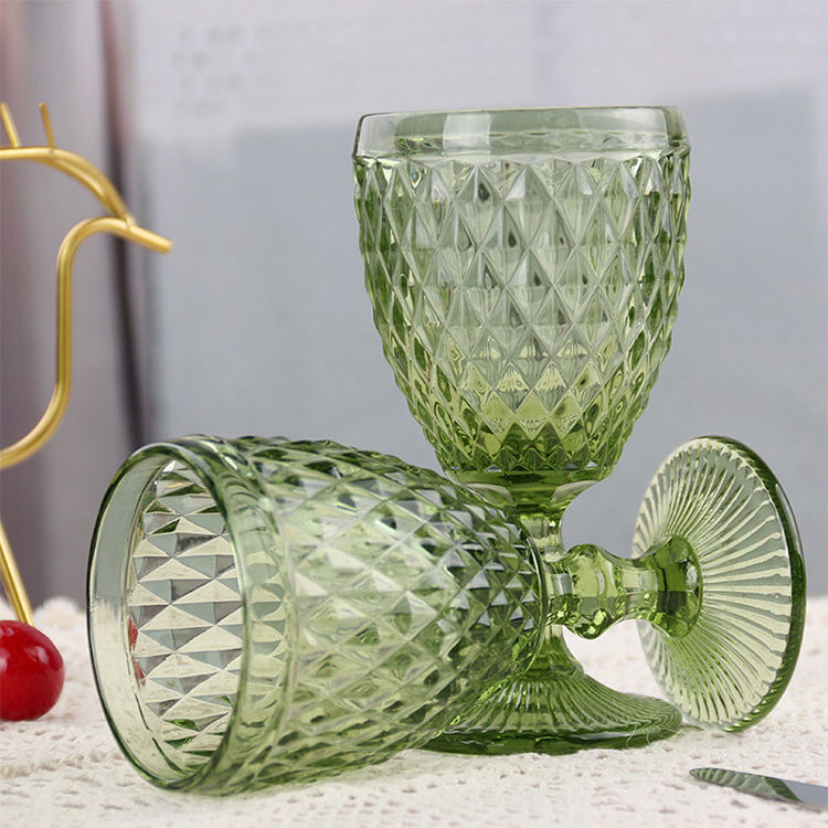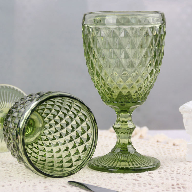 Calice da Vino Vintage in Vetro Cristallo Verde da 300ml, Bicchieri Colorati a Prezzo Economico all'Ingrosso