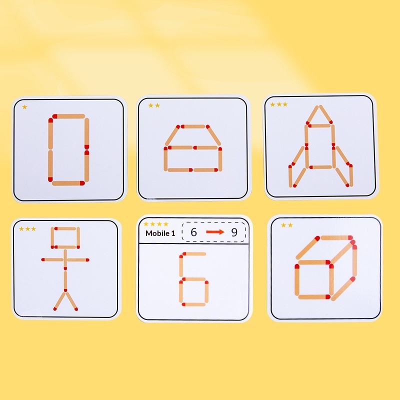 Gioco da Tavolo Educativo per Bambini, Matematica, Geometria, Logica, Allenamento dell'Attenzione, Puzzle in Legno con Fiammiferi per Età 4-6 Anni