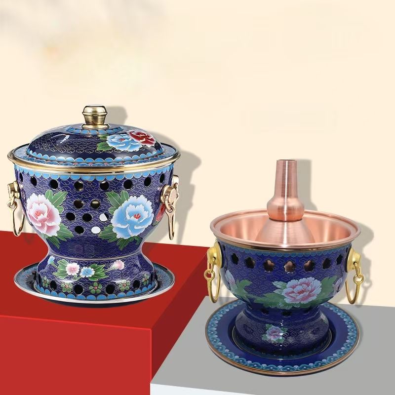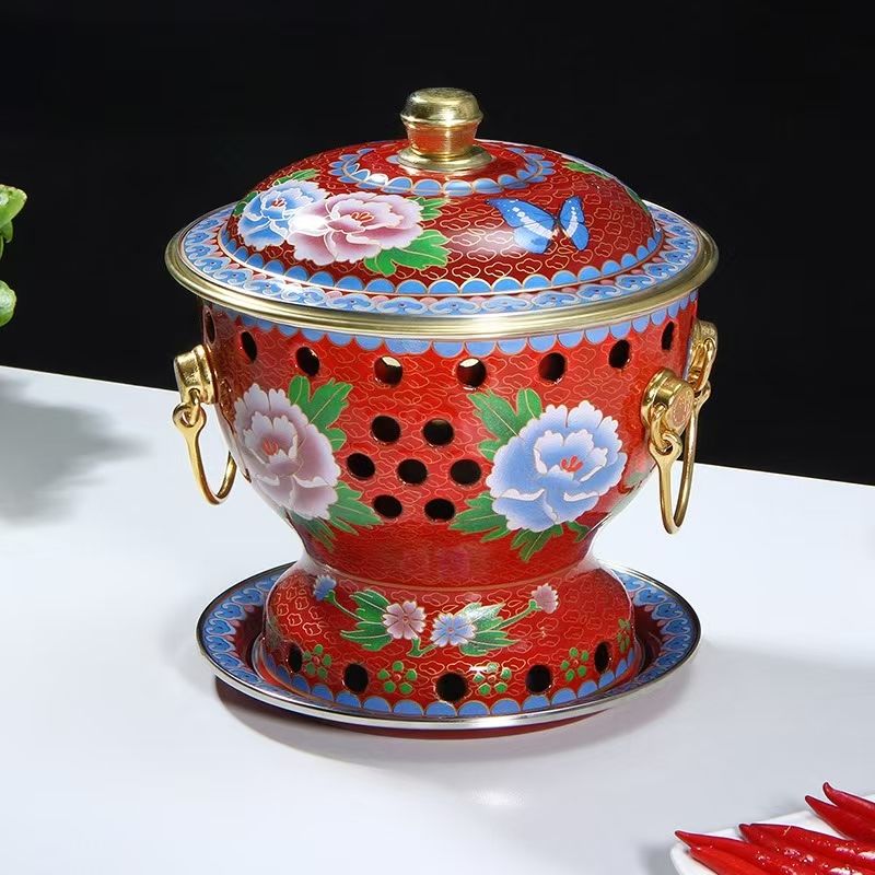 Scaldavivande singolo in rame puro cinese con smalto cloisonné per hot pot e picnic, all'ingrosso