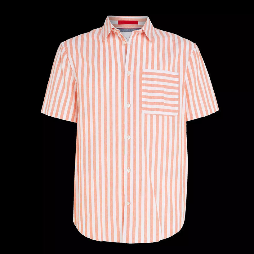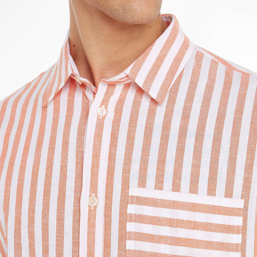 All'ingrosso camicia di cotone a righe arancioni in misto lino per uomo maniche corte con colletto abbottonato progettato su misura per l'autunno