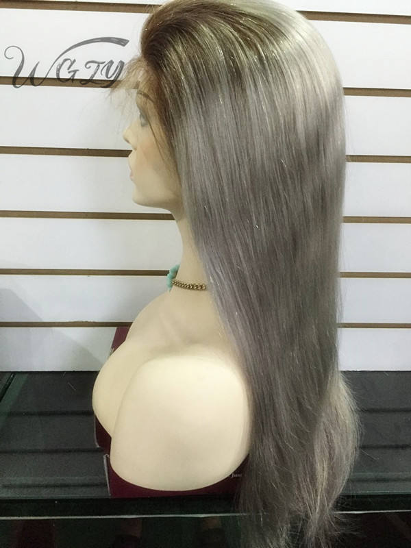 Commercio all'ingrosso di colore grigio ombre parrucca anteriore del merletto 100% real brasiliano dei capelli umani parrucca piena del merletto Dritto grigio parrucche per il nero delle donne