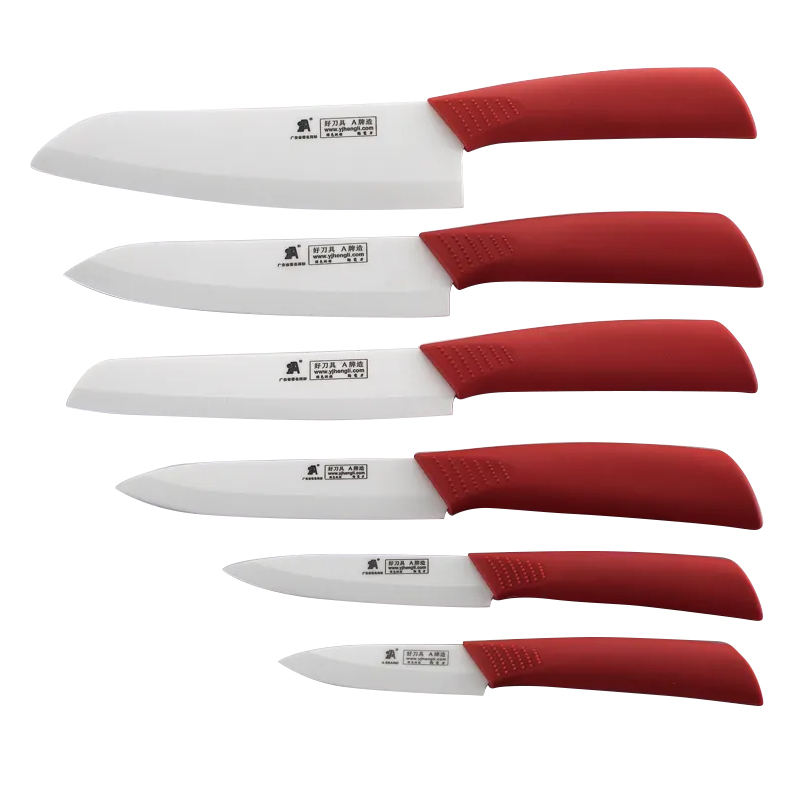 Set di Coltelli da Cucina con Manico Colorato, 6 Pezzi in Ceramica Antiaderente, Coltello da Chef e Coltello da Frutta
