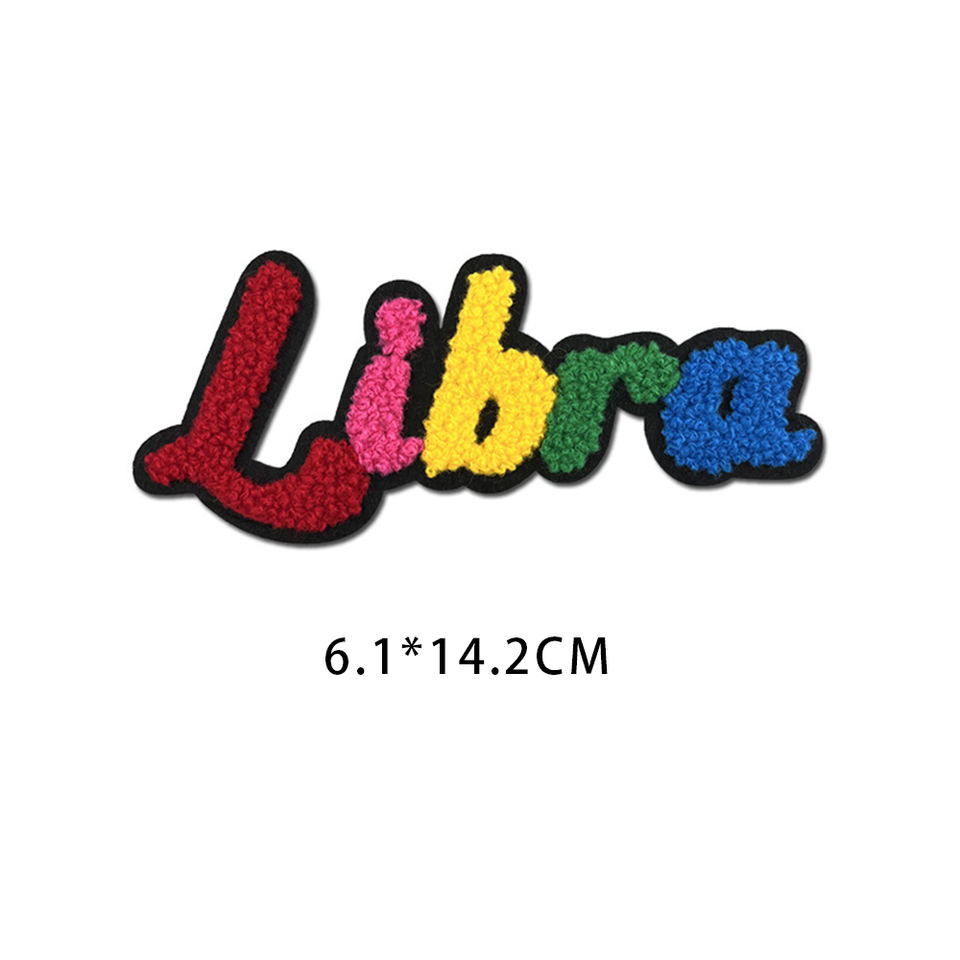 Wholesale Colorful Zodiac Chenille Patches Custom Embroidered Iron on Astrology Name Patch for Clothing Hoodies Bags