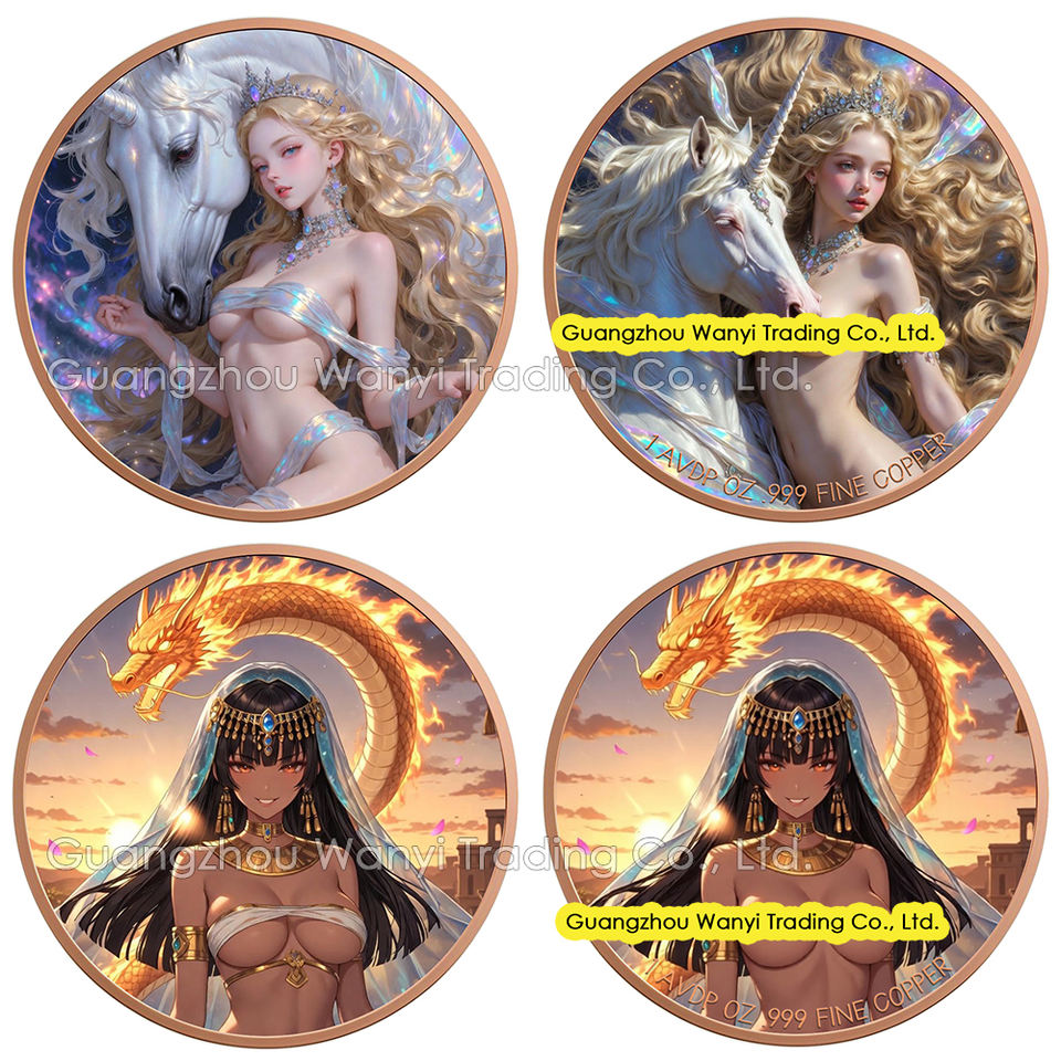 Moneta da Collezione in Rame Puro 999 da 1 Oncia con Rilievo Colorato, Donna Sensuale, Articolo da Collezione