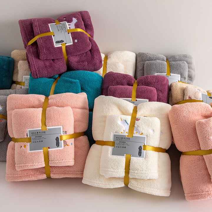 Wholesale Compressed Eco-Friendly Super Soft Quick-Dry Multicolor Microfiber Coral Fleece 2-Piece Bath Towel Set for Home Use