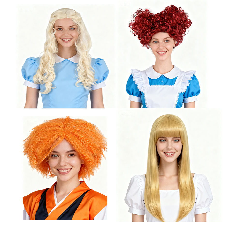 Parrucca Sintetica Lunga Bionda Ondulata Regolabile Resistente al Calore di Alta Qualità per Cosplay