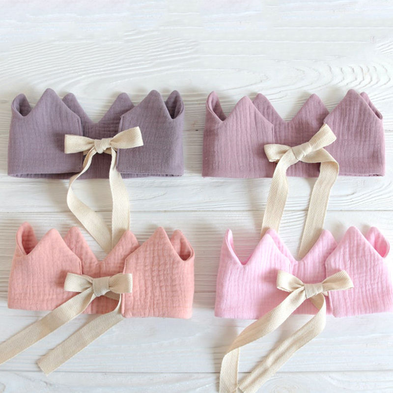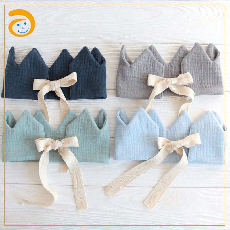 Wholesale Cotton Birthday Hat Kids Birthday Party Decoration Crown Muslin Cotton Fabric Baby Toddler Headband Hat Birthday Crown
