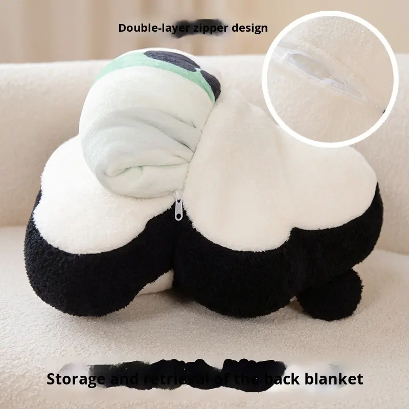 Coperta e Cuscino 2-in-1 in Peluche con Imbottitura in Cotone PP, Design Panda Carino per Compleanno e Antistress