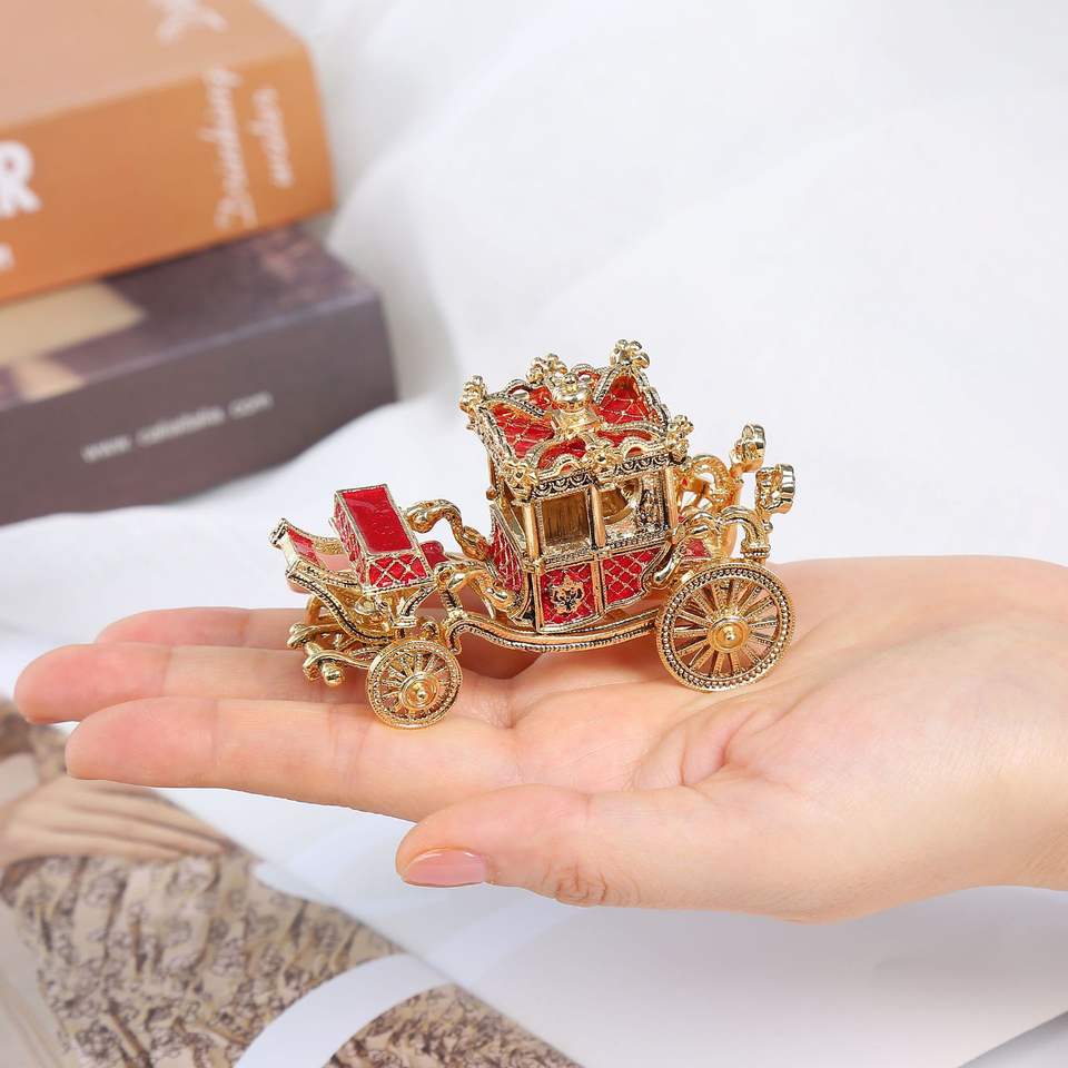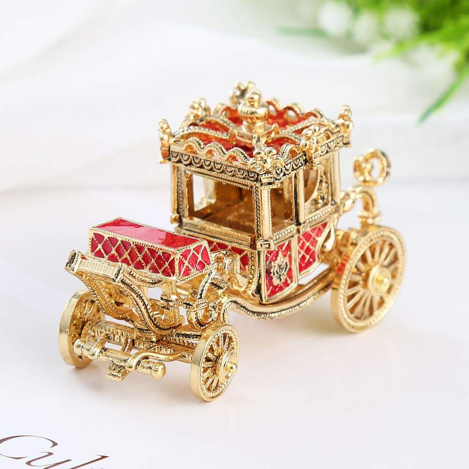 Artigianato Decorativo a Forma di Carrozza con Corona, Intarsiato di Diamanti e Smaltato, Decorazione per la Casa