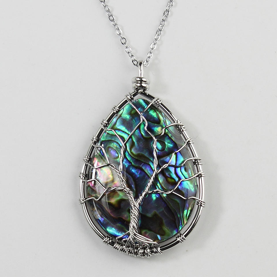 Collana con Ciondolo a Goccia d'Acqua in Conchiglia Naturale di Abalone con Catena in Bambù, Ideale per Gioielli Transfrontalieri - Vendita all'Ingrosso