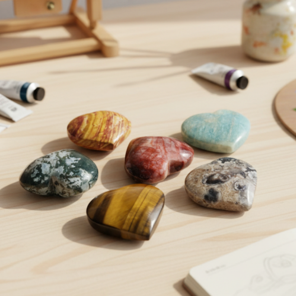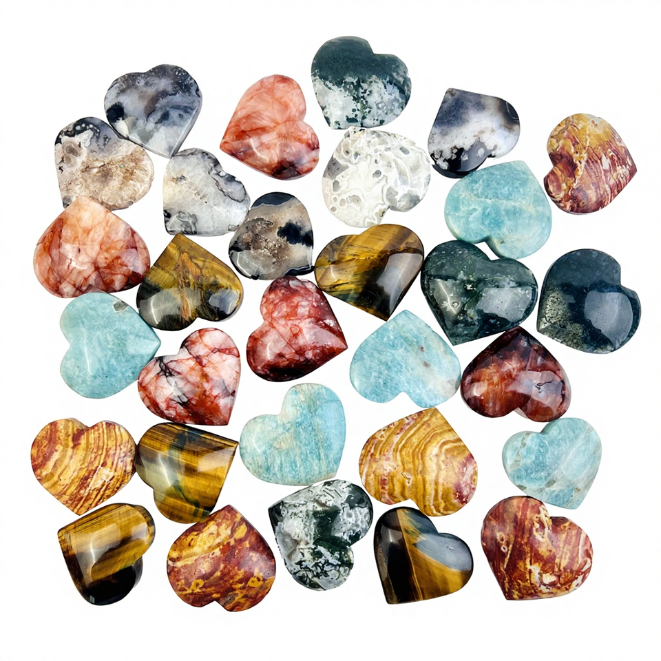 Wholesale Crystals Healing Stones Crafts Tiger Eye Stone Red Fire Quartz Moss Agate Crystal Heart for Home Decoration