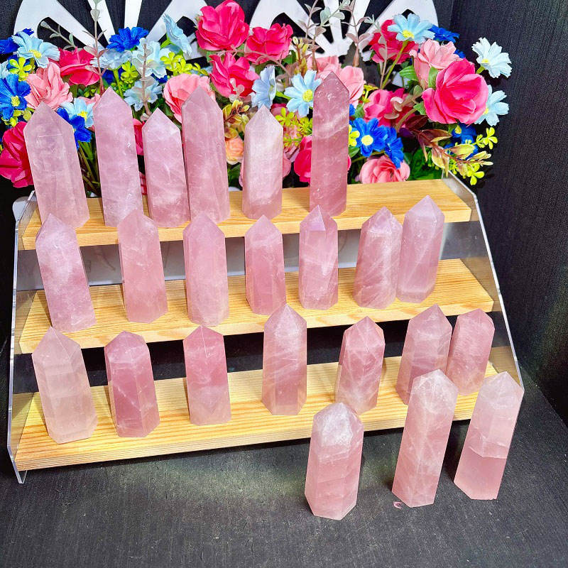 Nome del prodotto:Torre di quarzo rosa in pietra curativa naturale per il feng shui