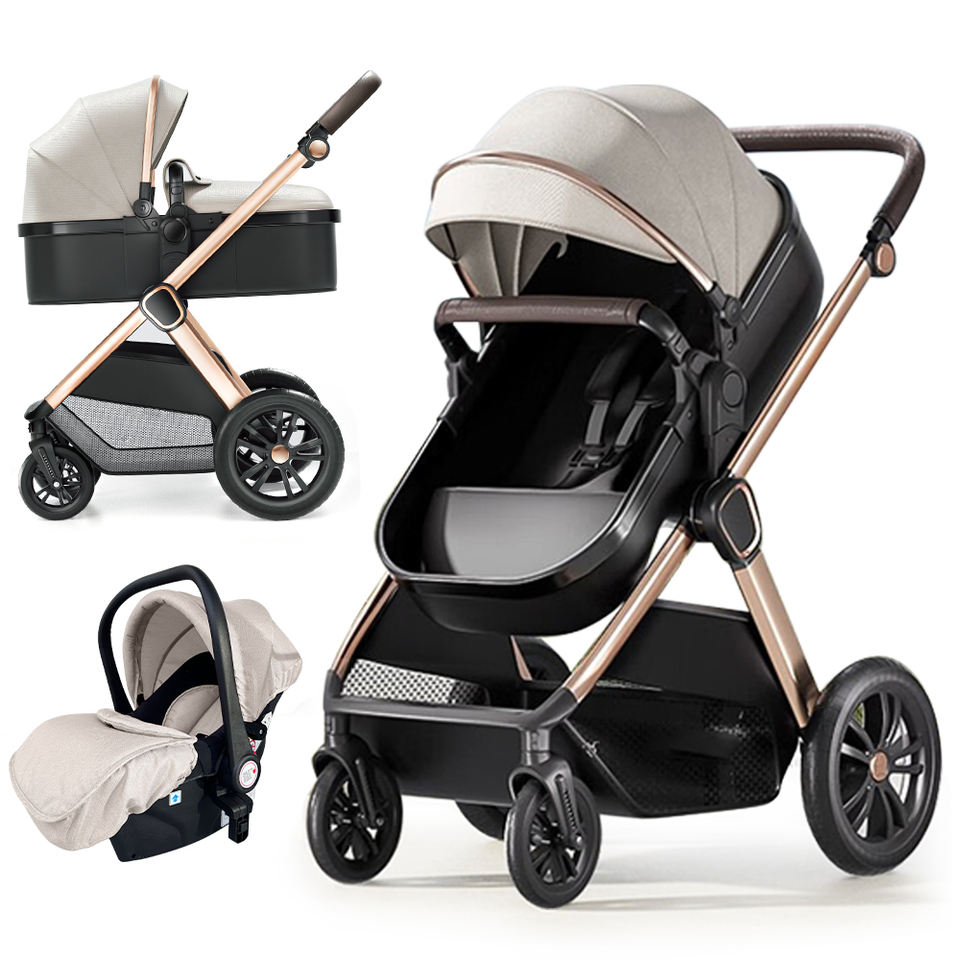 Wholesale Custom 3 in 1 Stroller Baby Carriage Pushchair Luxury Compact Folding Baby Pram Stroller 3 in 1 With Car Seat
