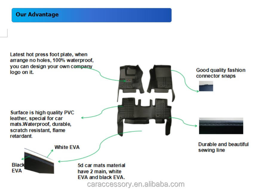 Accessori Interni Tappetini per Auto da Donna Personalizzati 3D/5D/6D/7D/9D in Pelle e Gomma Prodotti in Cina all'Ingrosso