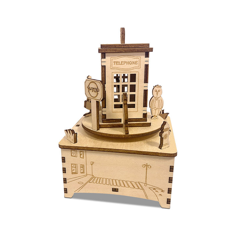 All'ingrosso Puzzle 3D personalizzato melodia liscia fai da te scatole di musica in legno Creative cabina telefonica tema per i bambini regalo