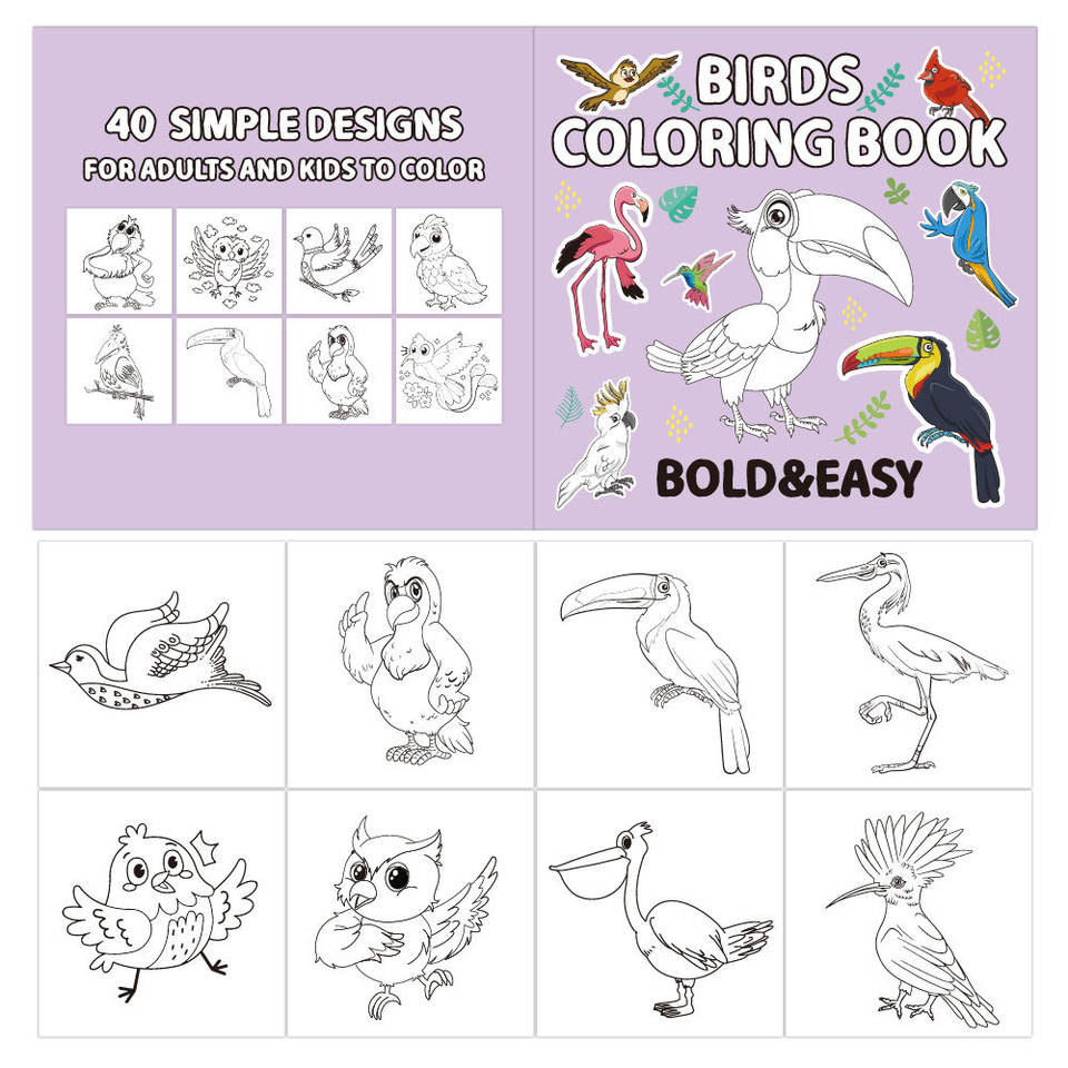 All'ingrosso personalizzato libro da colorare di 40 pagine per bambini perfetto rilegato simpatico cartone animato fiori uccelli libri da disegno per bambini