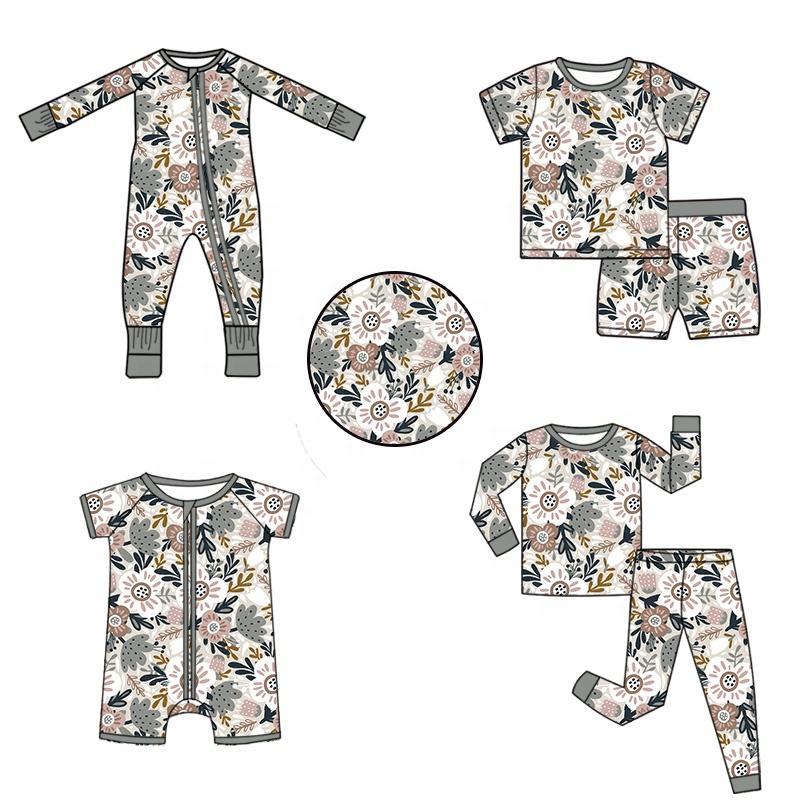 Wholesale Custom 95% Bamboo Viscose Custom Romper for Newborns Cute Jumper Sleepwear Pajamas Baby Clothing Set with Zipper