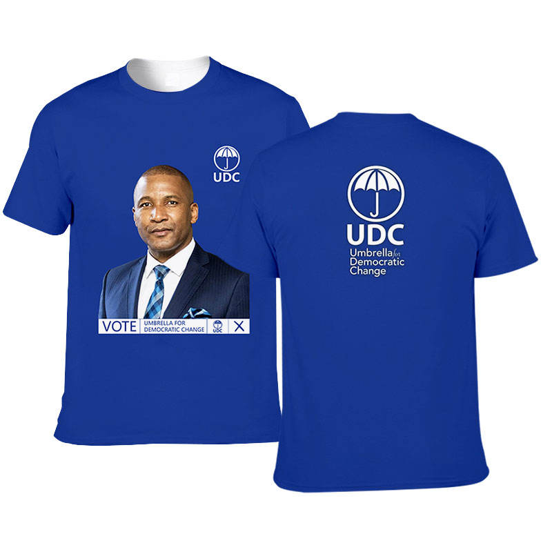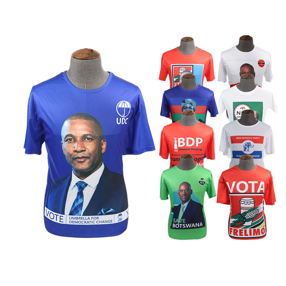 All'ingrosso su misura tutte le magliette stampate di sublimazione cotone poliestere si sente la stampa digitale della campagna elettorale politica del Botswana UDC