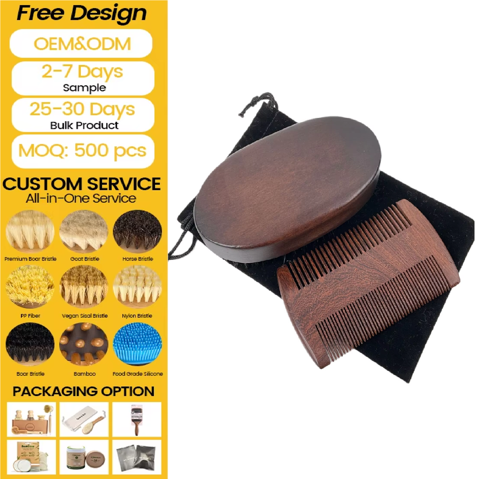 Wholesale Custom Anti-Static Bamboo Wooden Beard Comb Set Men's Shaving Brush and Pocket Grooming Kit