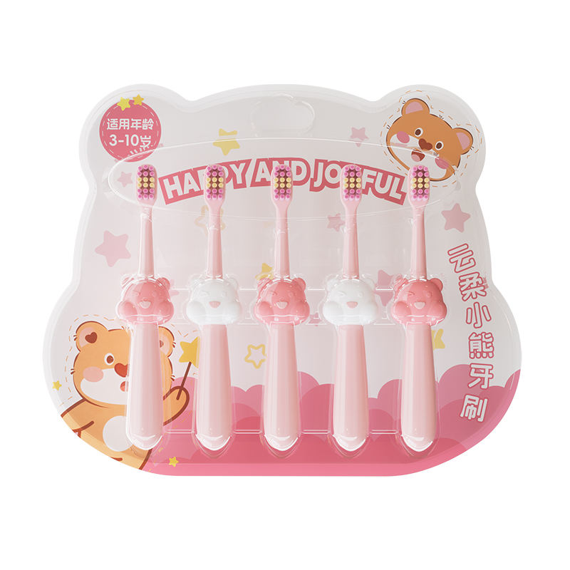 Set di 5 Spazzolini da Denti per Bambini con Design Personalizzato a Forma di Orsetto, Setole Morbide, Produttore di Spazzolini in Plastica