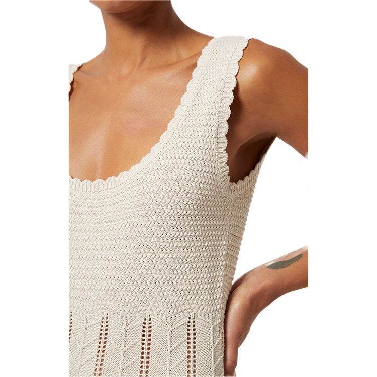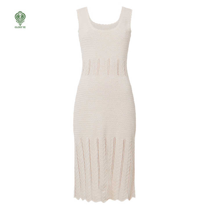 Maglieria a girocollo aperta a Pointelle personalizzata all'ingrosso con volant mare Midi a mano lavorato a maglia in cotone uncinetto abito da donna