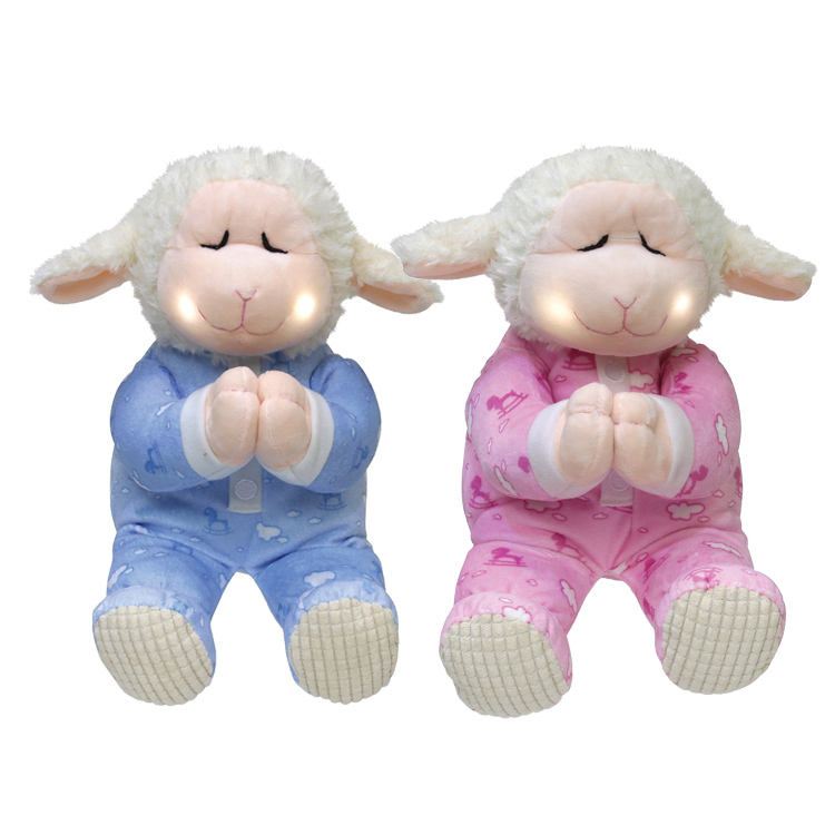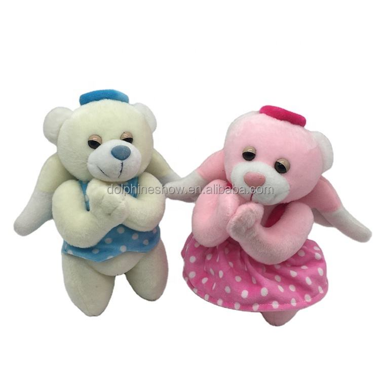 Wholesale Custom Cute Stuffed Animal Soft Toy Plush pink and Blue Praying Teddy Bear with Music