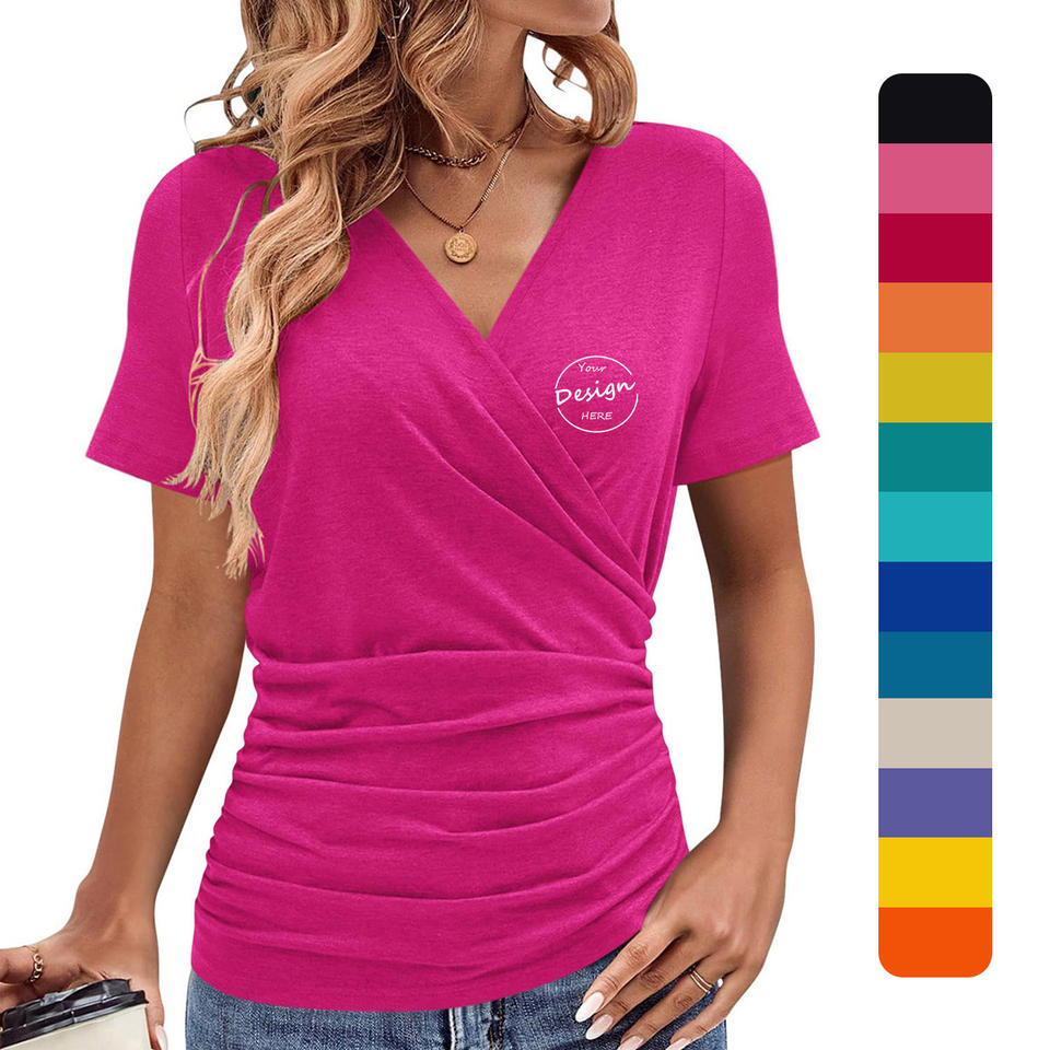 Vendita all'ingrosso Slim Fit Slim personalizzato con scollo estivo Casual con tinta unita a T-shirt con scollo a V profondo t-shirt da donna