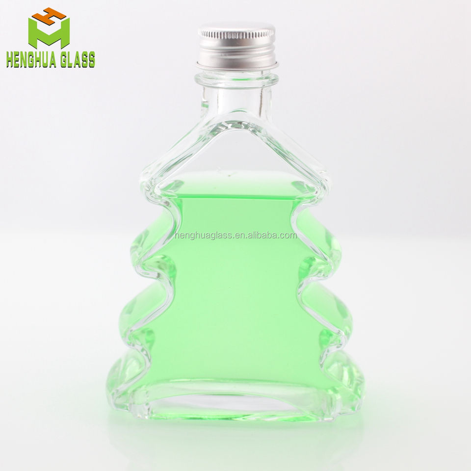 Wholesale Custom Design Christmas Tree Shape Clear 200ml 7oz 20cl Glass Bottles for Wine Liquor Olive Oil Liquid with Screw Cap
