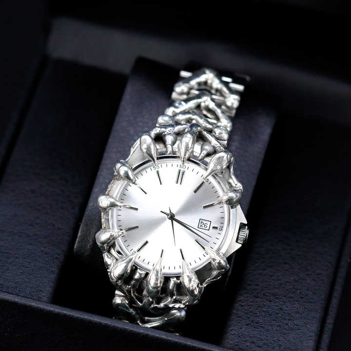 Orologio Gotico Personalizzato con Quadrante in Alabastro e Logo, Movimento Giapponese MIYOTA, Quadrante in Acciaio Inossidabile con Punte, Vendita all'Ingrosso