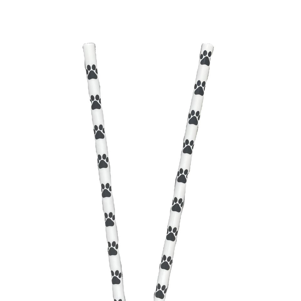 Stampe riutilizzabili della zampa delle cannucce riutilizzabili animali del leopardo nero bianco della stampa della zampa di plastica dura riutilizzabile su ordinazione all'ingrosso