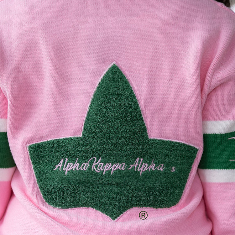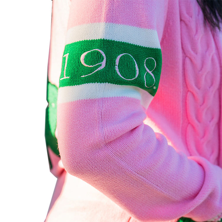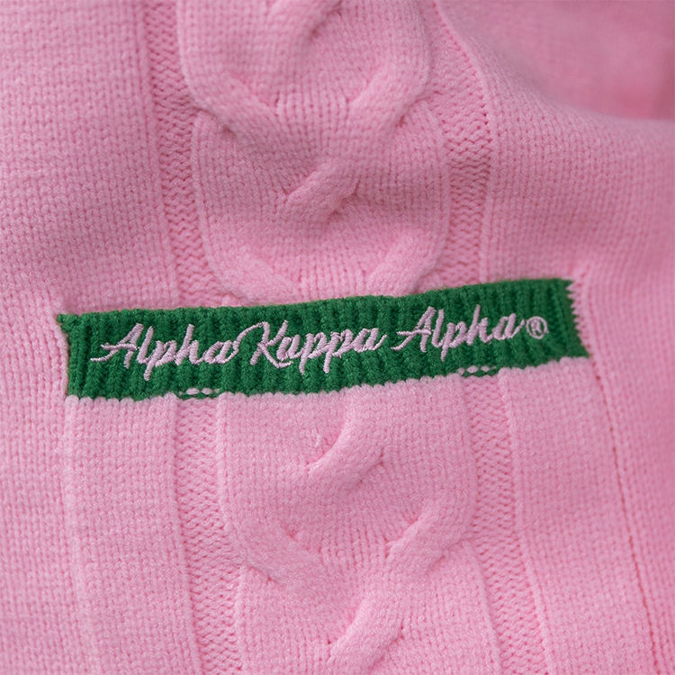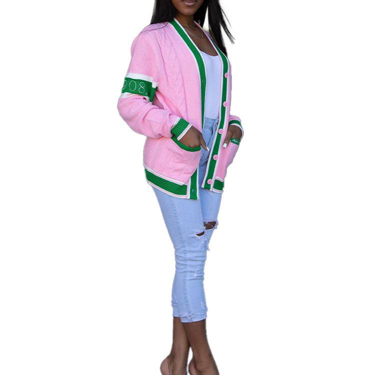 Wholesale Custom Embroidery Knit Top Delta Greek Sigma Theta AKA Green Gold Sorority Cable Cotton Knit Cardigan Women's Sweater