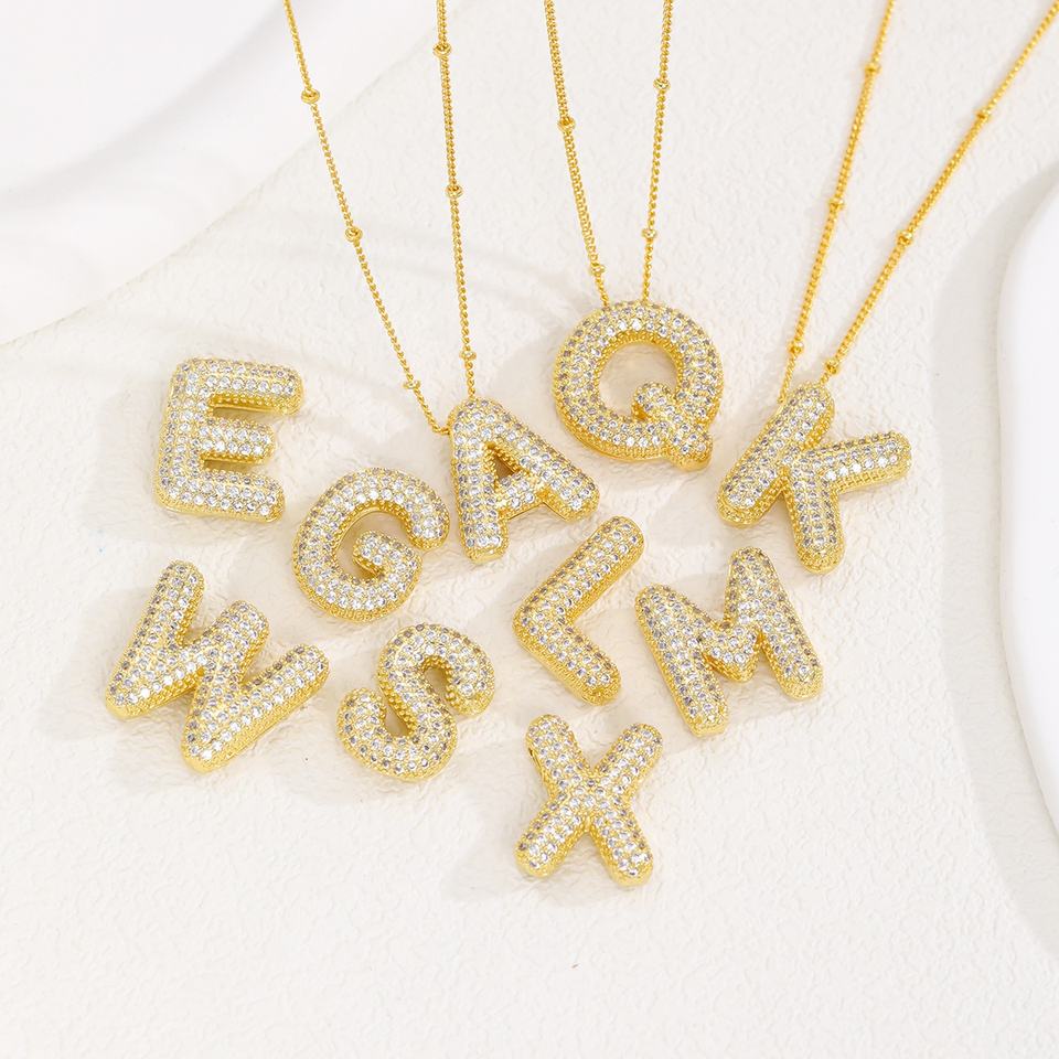 Wholesale Custom Fine Fashion Jewelry 18K Gold Plated Brass Necklace Luxury Zircon Chubby Letter Pendant Necklace for Women