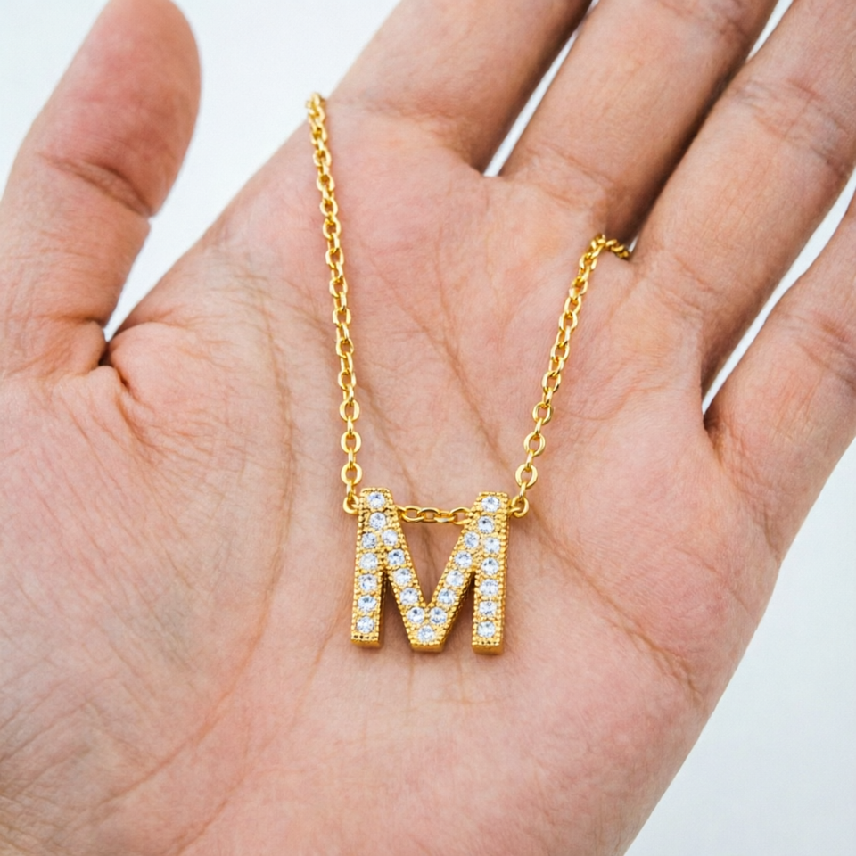 Collana con Ciondolo Personalizzato in Oro 18k Placcato con Zirconi Cubici Bianchi, Gioielli Raffinati all'Ingrosso per Donne e Bambini