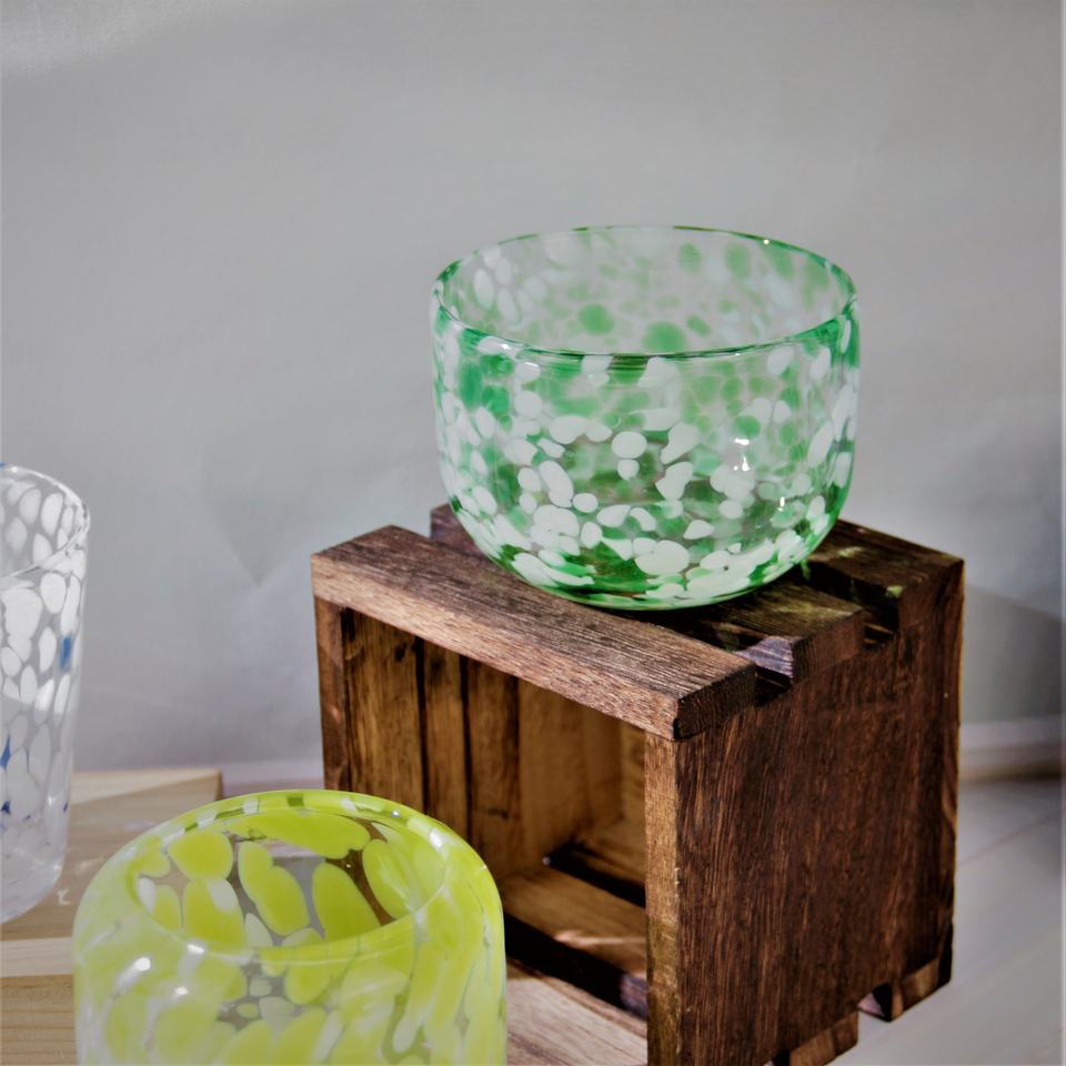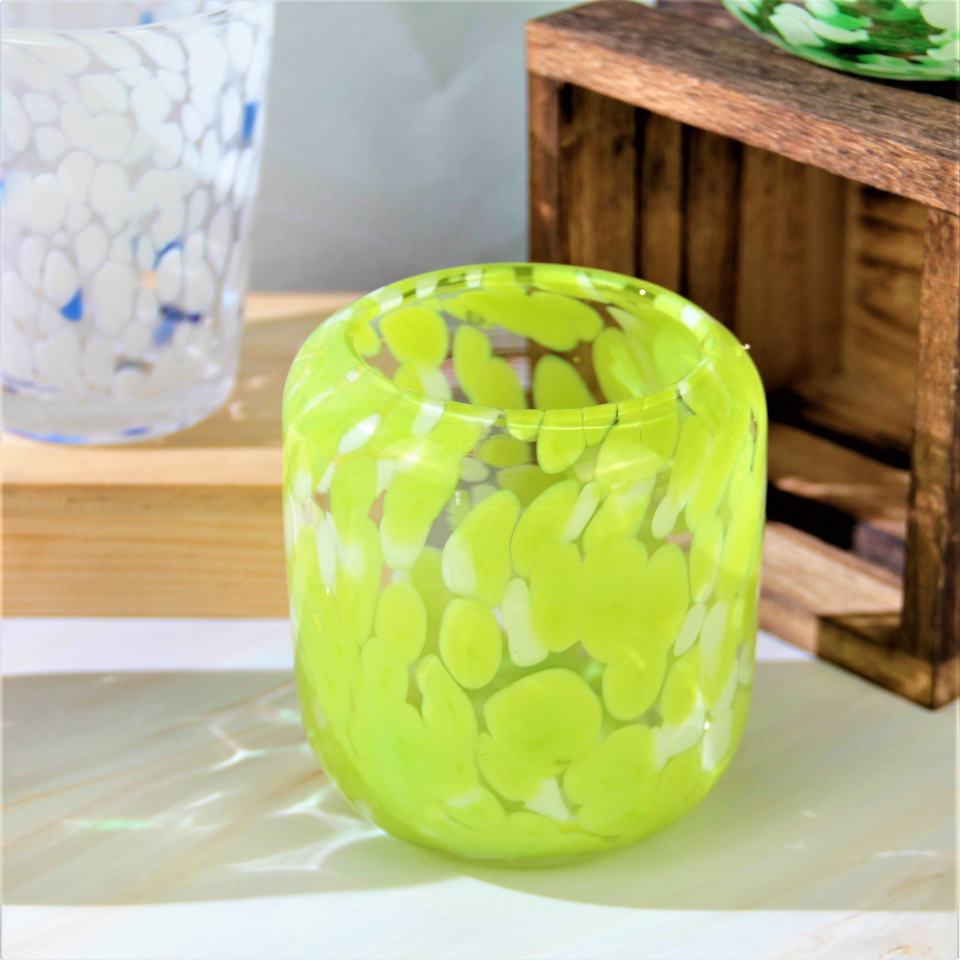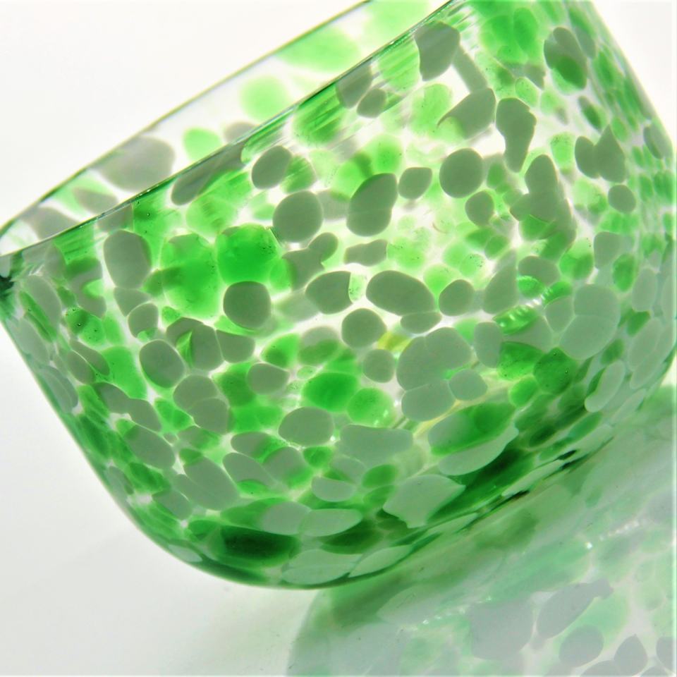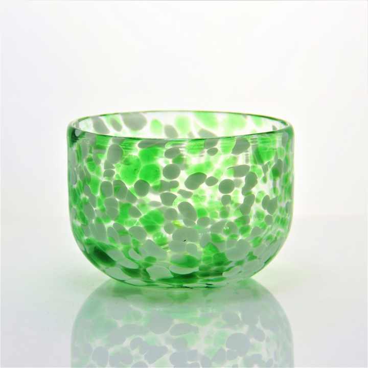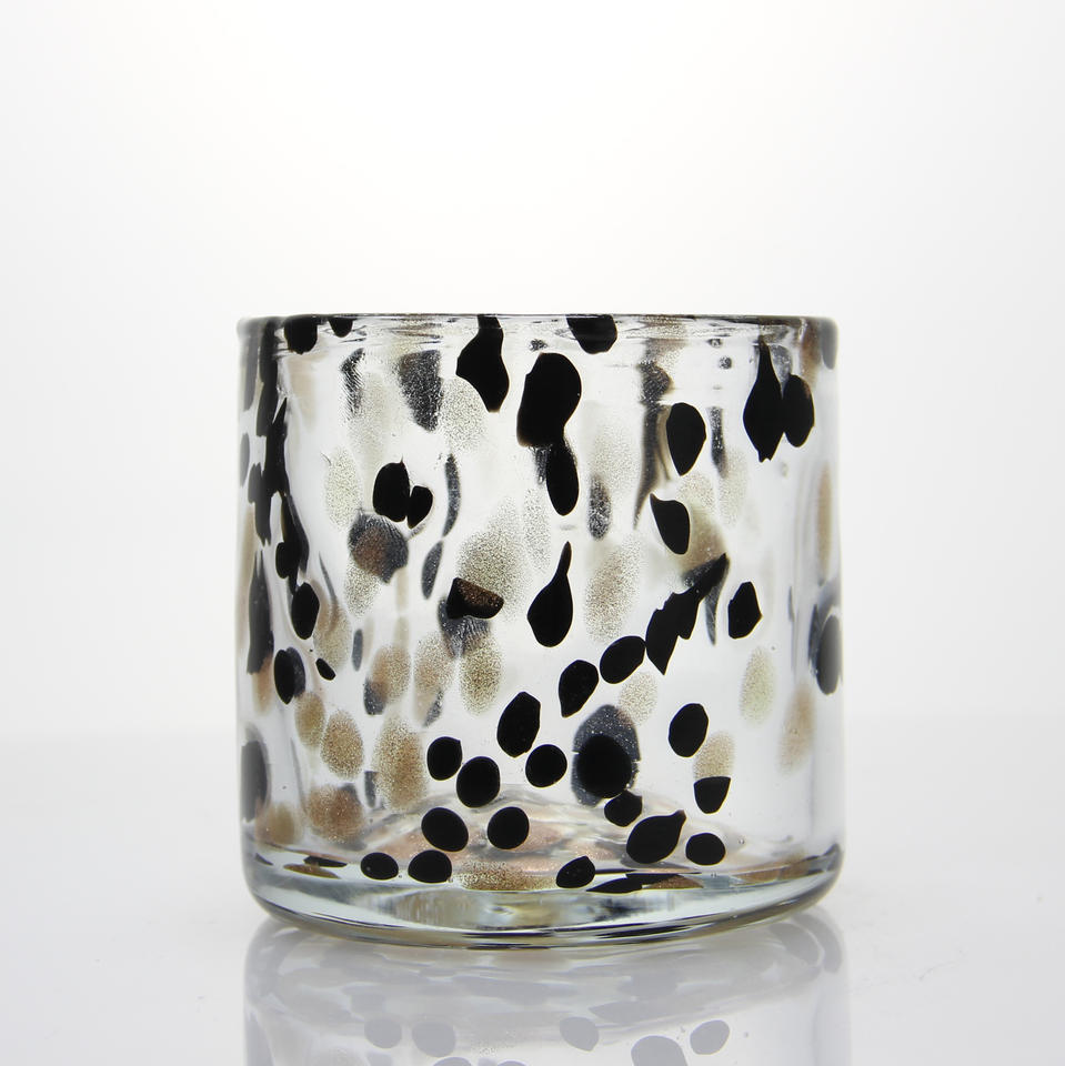 Commercio all'ingrosso personalizzato soffiato a mano verde bianco dappled coriandoli ciotola rotonda bicchiere portacandele in vetro barattoli contenitore