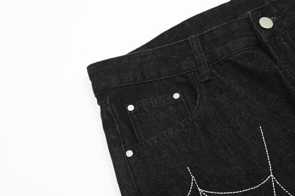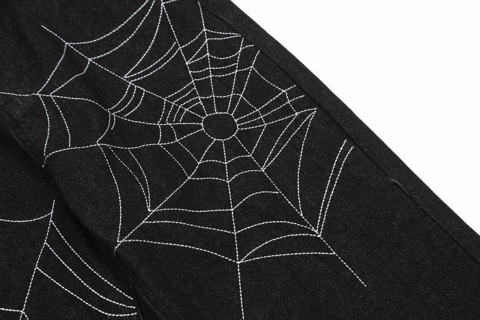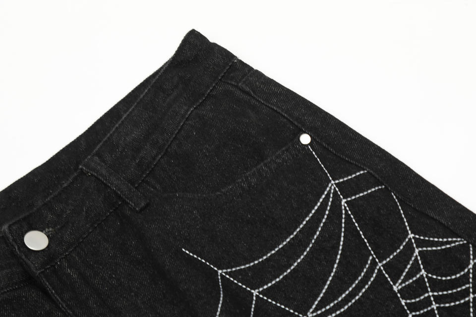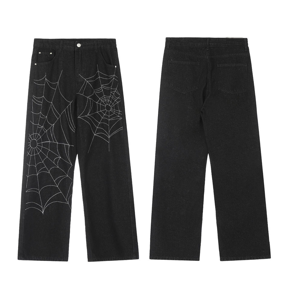 Vendita all'ingrosso Jeans a ragnatela di tendenza High Street Custom taglie forti da uomo alla moda di marca Street Trend Design Sense pantaloni estivi a gamba larga