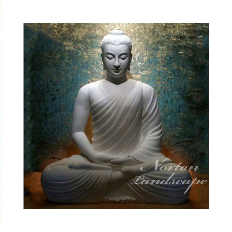 Ingrosso su misura grande scultura all'aperto a grandezza naturale in pietra bianca buddha scultura seduta in marmo bianco statue di buddha