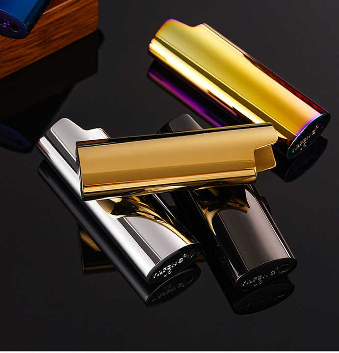 Wholesale Custom Laser Logo Mirror Gold Metal Shell Lighter Cover Lighter Cases Sleeves Holders Gift for Man Smoking