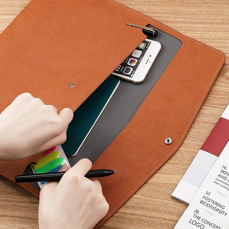 Sacchetti del supporto del sacchetto del documento del taccuino del computer portatile della compressa di conferenza del cuoio A4 di Logo su ordinazione all'ingrosso con il bottone magnetico