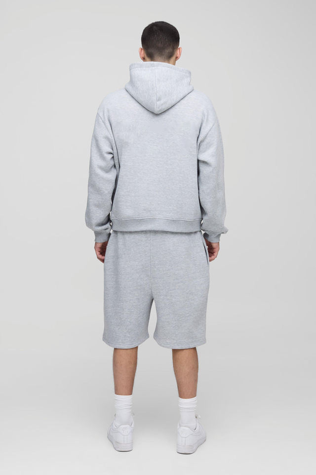 Wholesale Custom Logo Gray Sport Wear Hoodie Shorts Set Men Cotton Tracksuit Jogger Suits 2 Piece Set Shorts and Hoodie Set Mens