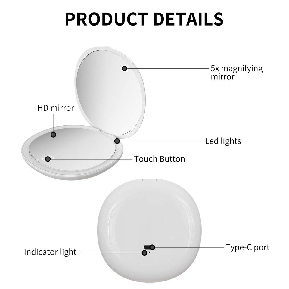 Nome del prodotto:RM450 ricaricabile doppia tasca laterale LED specchio per il trucco