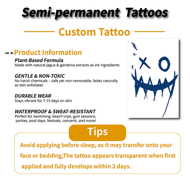 Wholesale Custom Long Lasting 2 Weeks Realistic Juice Tattoo Sticker 100% Safe Non-Toxic Semi-permanent Tattoo