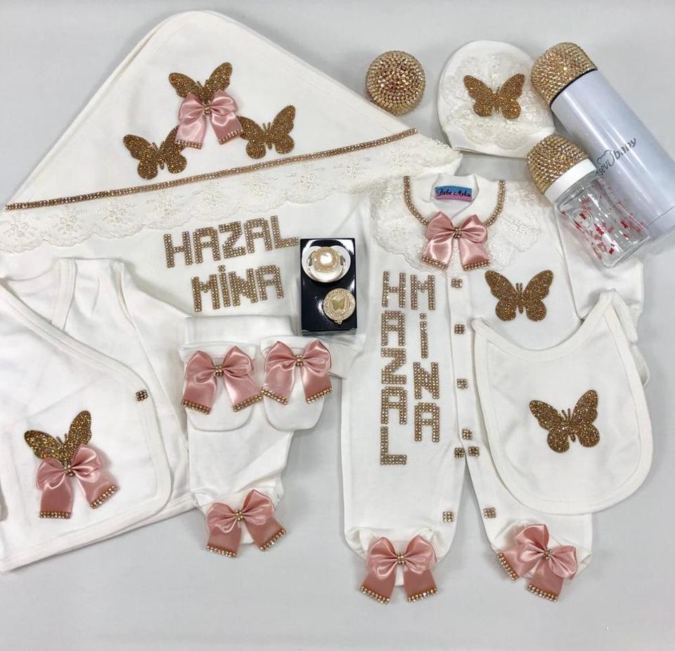 All'ingrosso manica lunga personalizzata 100% bolle di cotone moderno di lusso di alta qualità nome scritto primavera bambine pagliaccetto Set bambino