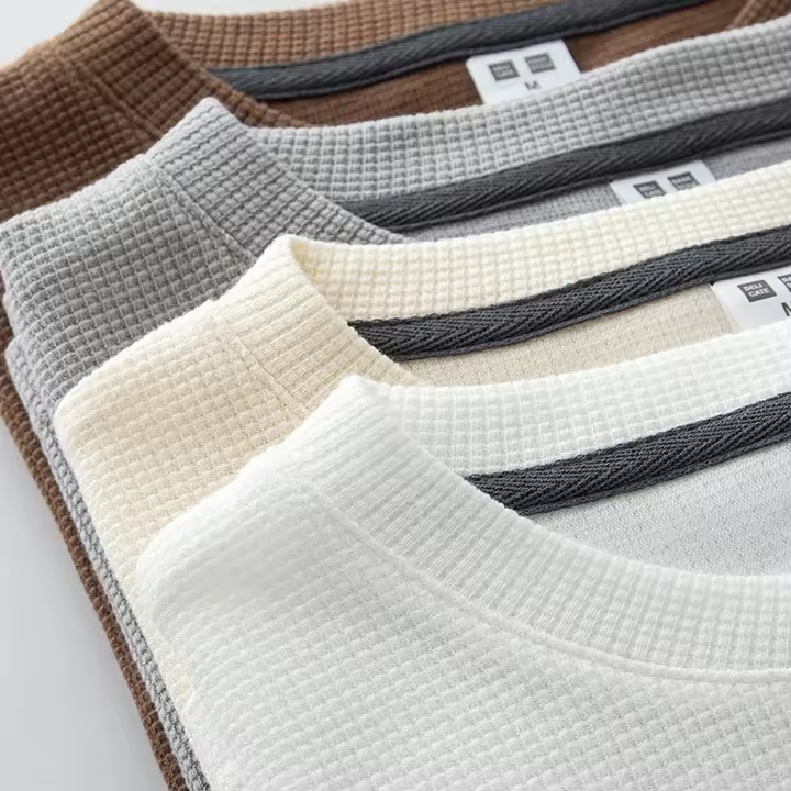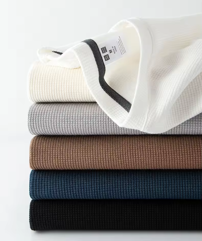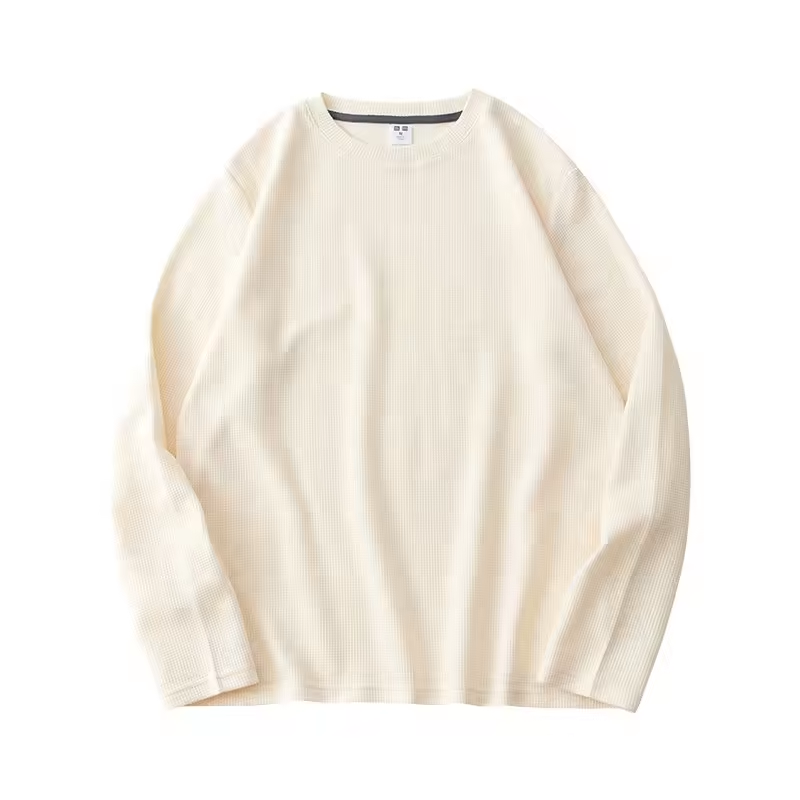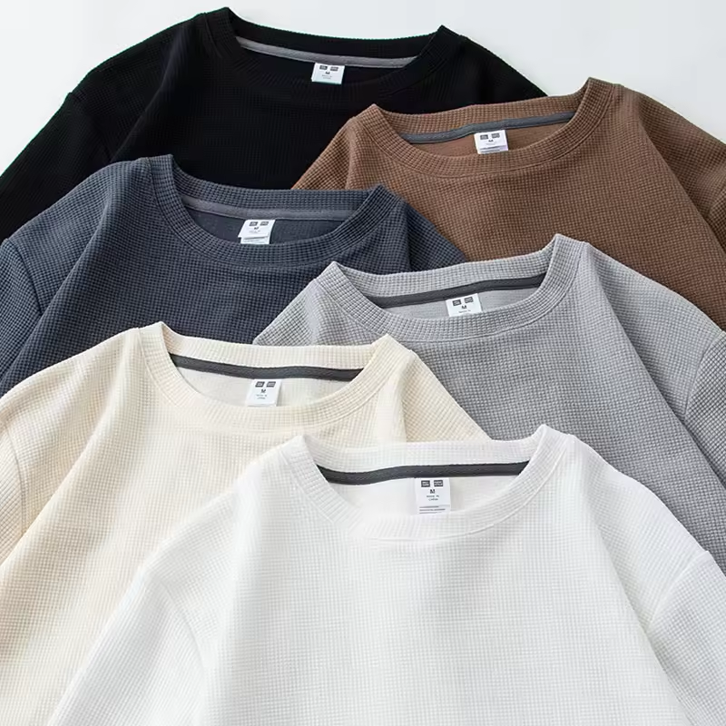 Maglietta a Maniche Lunghe in Cotone 100% di Alta Qualità, Tessuto Waffle, Pesante, Tinta Unita, Moda Uomo, Vendita all'Ingrosso