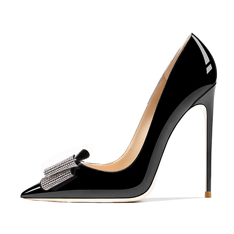 Commercio all'ingrosso su misura di cristallo a punta di farfalla Sexy tacchi alti taglio poco profondo nero pump scarpe da donna per la festa 12cm 10cm 8cm