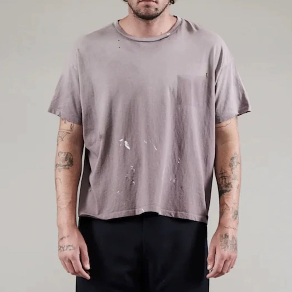 T-shirt da uomo personalizzata all'ingrosso, vintage, effetto sbiadito, distressed, taglio cropped, 200gsm, 100% cotone, vestibilità squadrata, taglio e cucito