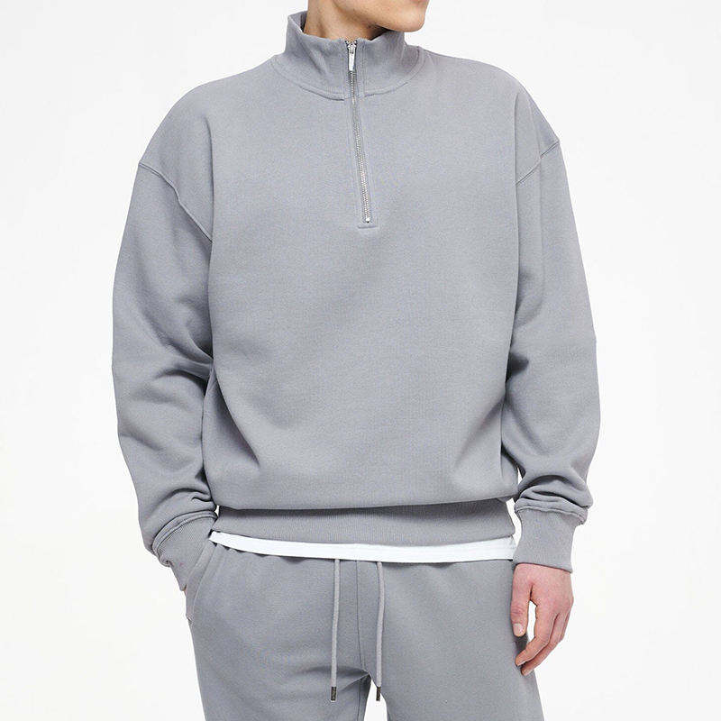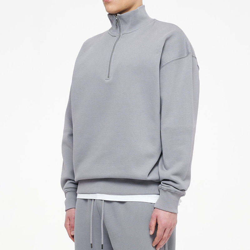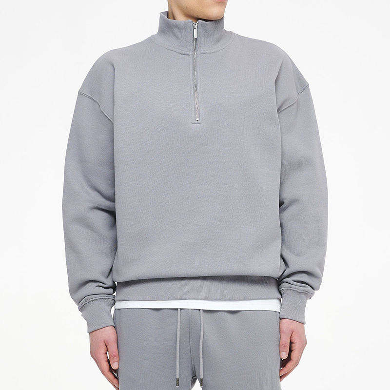 All'ingrosso felpa da uomo personalizzata mezza Zip senza cappuccio tinta unita oversize 1/4 Logo personalizzato felpa con cerniera in pile