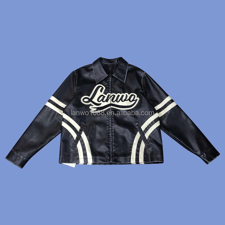 Commercio all'ingrosso stile stile Vintage stile stile Vintage personalizzato giacche di pelle Cropped Casual inverno con cerniera motivo moto